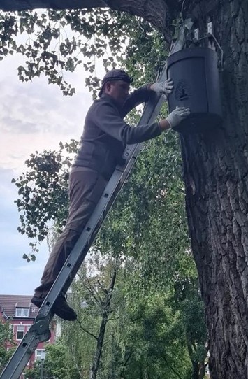 In unmittelbarer Nähe zum Gymnasium wurden die Fledermauskästen im Kantpark Duisburg untersucht und deren Inhalt dokumentiert.