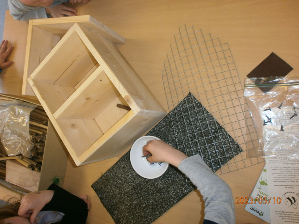 Am 15. Mai diesen Jahres konnten wir mit der Unterstützung der Biologischen Station Westliches Ruhrgebiet einen online Workshop zum Thema Insektenhäuser durchführen. Es wurde dort nicht nur erklärt, wie die Bienenhäuser zusammengebaut werden,sondern auch wo die Häuser am besten aufgehängt werden können und was als Nahrung für unsere fleißigen Helfer wichtig ist. Von einer Kita gabs auch eine sehr schöne Rückmeldung mit süßen Bildern, die wir Ihnen nicht vorenthalten möchten!